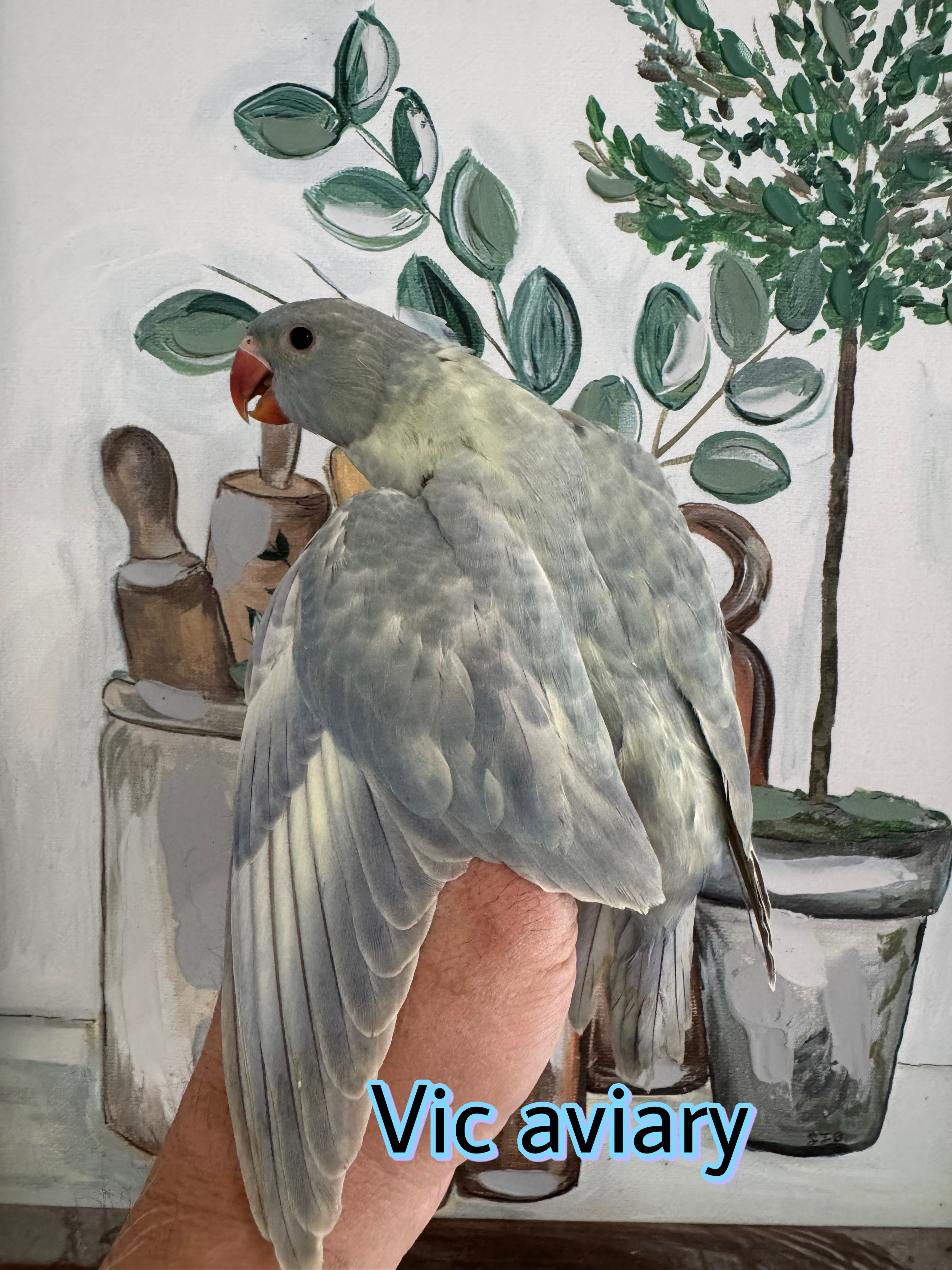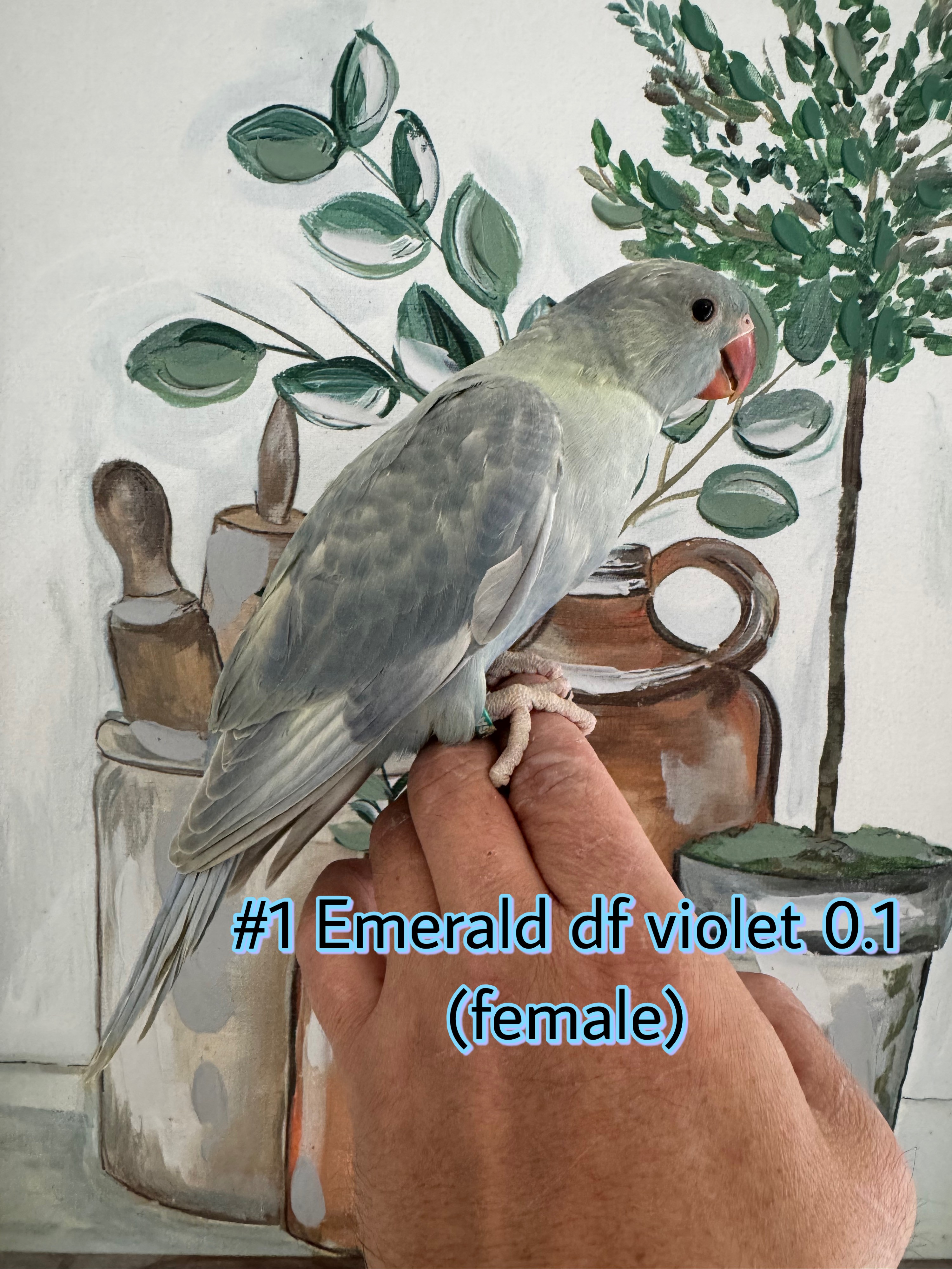 A rare and visually striking Emerald Double Factor Violet Dompied (Harlequin) Indian Ringneck, hatched February 2026. Bred from a Violet Emerald Split Harlequin father and a Double Factor Dompied Violet mother, this young female carries one of the most coveted mutation combinations in the species. Unique pied patterning, violet influence, and exceptional genetics make her a standout for breeders and enthusiasts alike.
